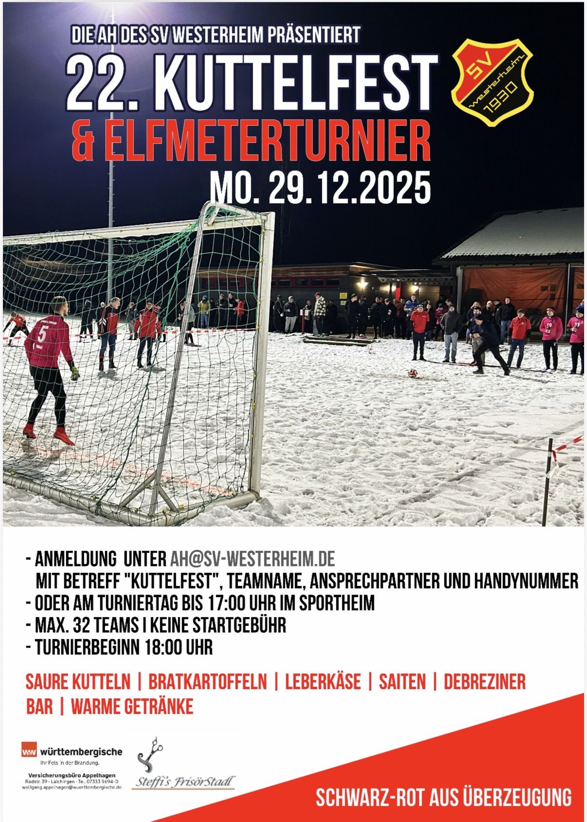 Am Montag, 29. Dezember findet das 22. Kuttelfest und Elfmeterturnier statt, veranstaltet von der AH des SV Westerheim.