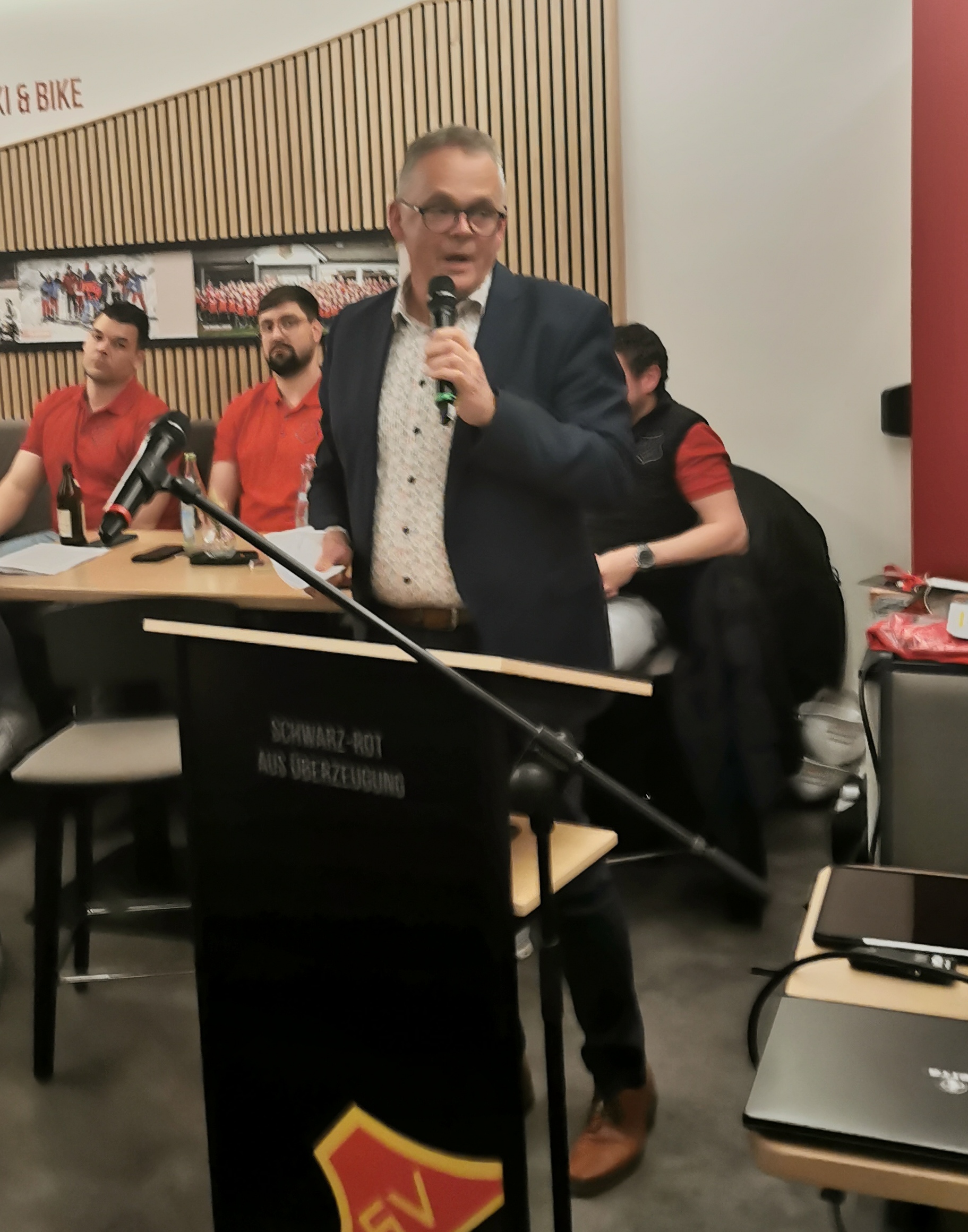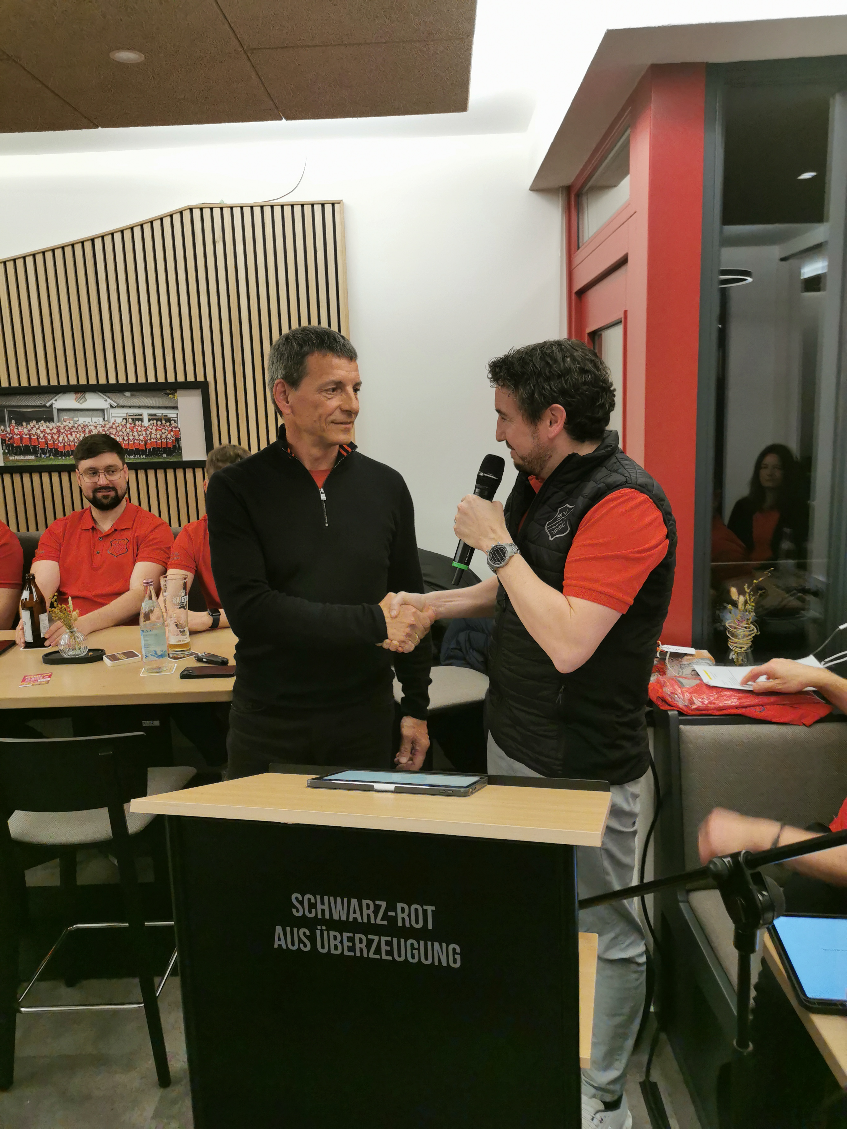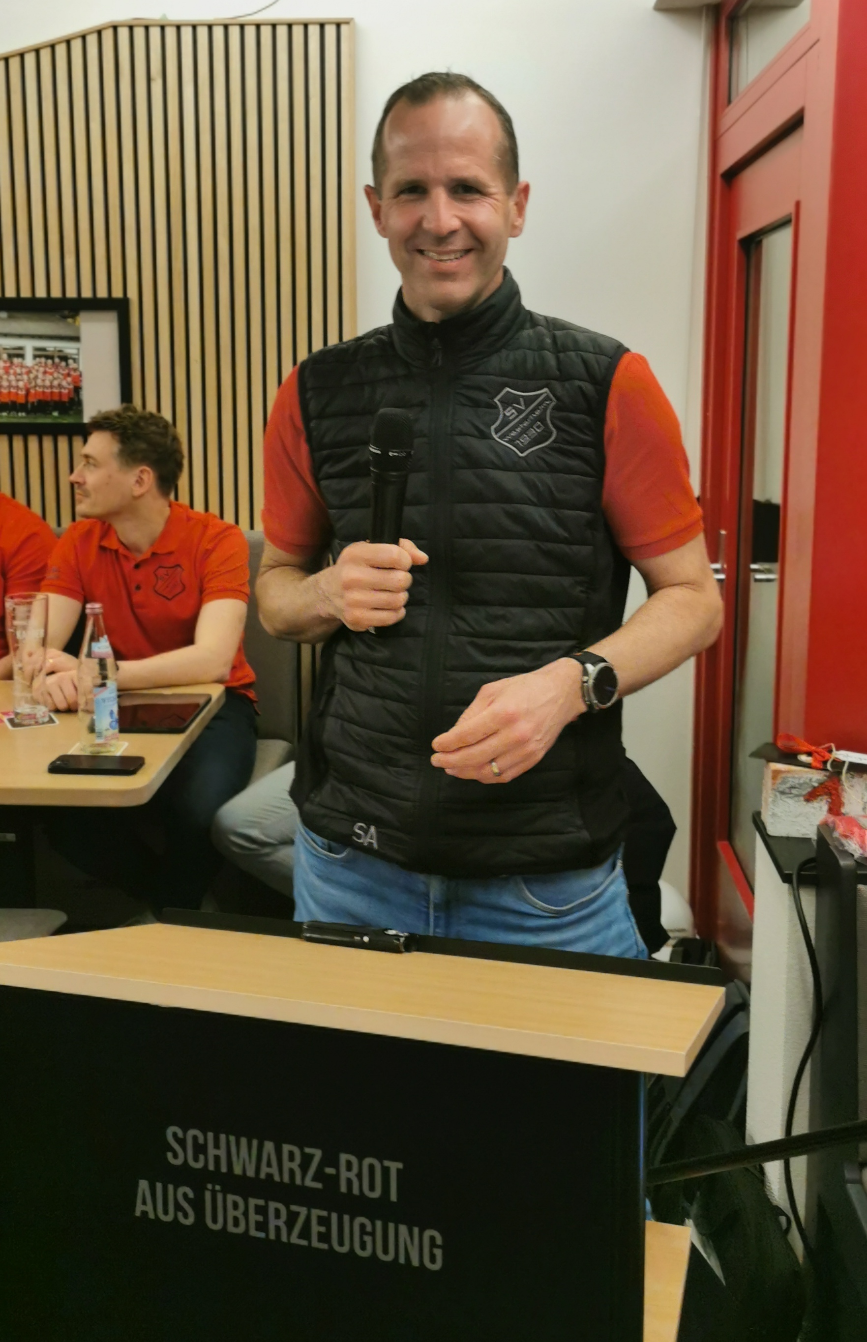 Daniel Volles gab einen Rückblick auf die Veranstaltungen im abgelaufenen Jahr wie Fitness Convention, Tabaluga Revival, 50 Jahre Schwimmabteilung & Alb-Bad, Sportwochenende, Schlachtfest und Jahresfeier. Rieck berichtete über den Verlauf der gelungenen Sportheimmodernisierung.