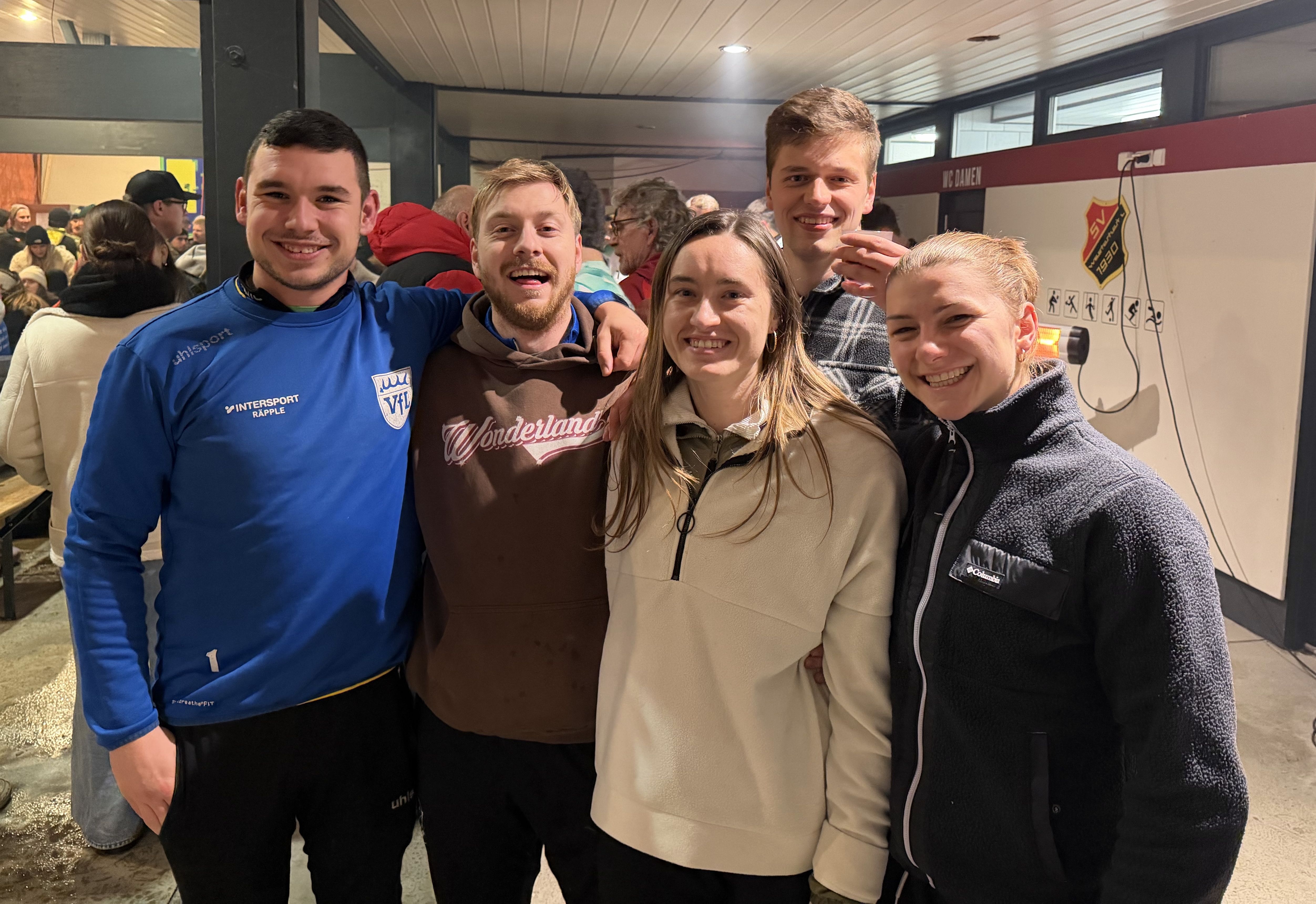 Das Sportheim befindet sich aktuell mitten im Umbau, doch dank zahlreicher zusätzlicher Arbeitsdienste konnte der Gastraum in einen passenden Rahmen verwandelt werden. Der Rohbau ist fast abgeschlossen, und mit Baulampen war für ausreichend Licht gesorgt.