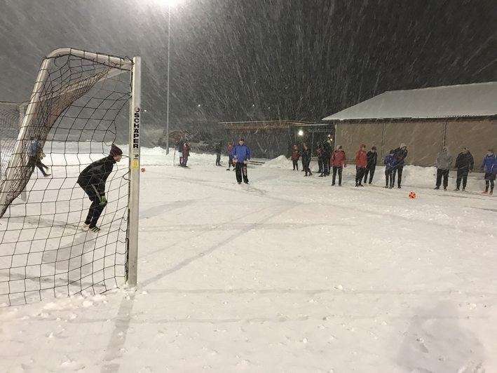 Die 16 Mannschaften wurden auf 3 Gruppen verteilt. Im Duell jeder-gegen-jeden und jeweils 5 Schützen gab es spannende Begegnungen. Der weiche Untergrund mit dem Schnee kam den Torhütern in diesem Jahr entgegen.