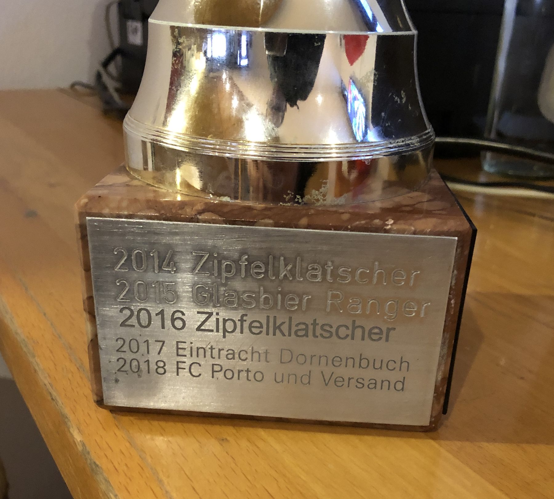 Bei den Zipfelklatschern scheiterte Thomas Baumeister am Torhüter und da auch ein Spieler des FC Lieberampool nicht traf, ging es weiter. Hier scheiterte der bis dahin doch sehr souveräne Florian Bohnacker an den eigenen Nerven. Anders ist es nicht zu erklären, dass er den Ball unfassbar knapp neben den rechten Pfosten setzte. Den finalen Schuss konnte die sympathische Truppe aus dem Täle souverän versenken. So kannte der Jubel keine Grenzen und der Wanderpokal wanderte mal wieder ins Täle. Es siegte ein junges Team, das sogar eine eigene Facebook Seite betreibt. Der Teamname ist an den FC Liverpool angelehnt.