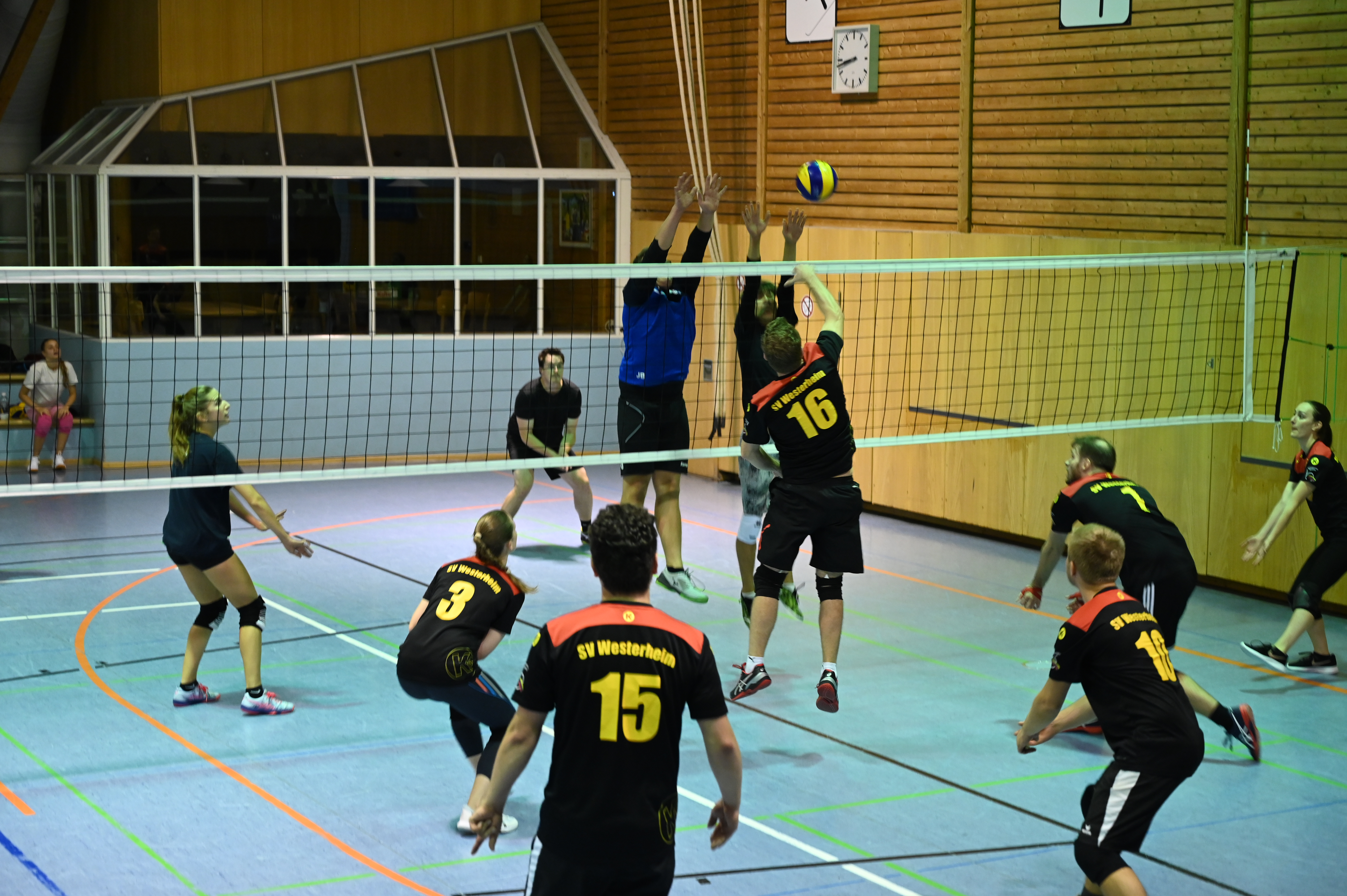 Die Westerheimer Volleyballer haben am 12. Mai erneut am Freitagabendturnier beim TSG Söflingen teilgenommen. Mit 13 Mannschaften war das Turnier gut besucht und jegliche Spiele wurden auf Zeit gespielt. Mit dem Motto „Wer nix im Kopf hat, hats in de Fias“ wurde hier direkt das neu einstudierte Spielsystem ausprobiert.