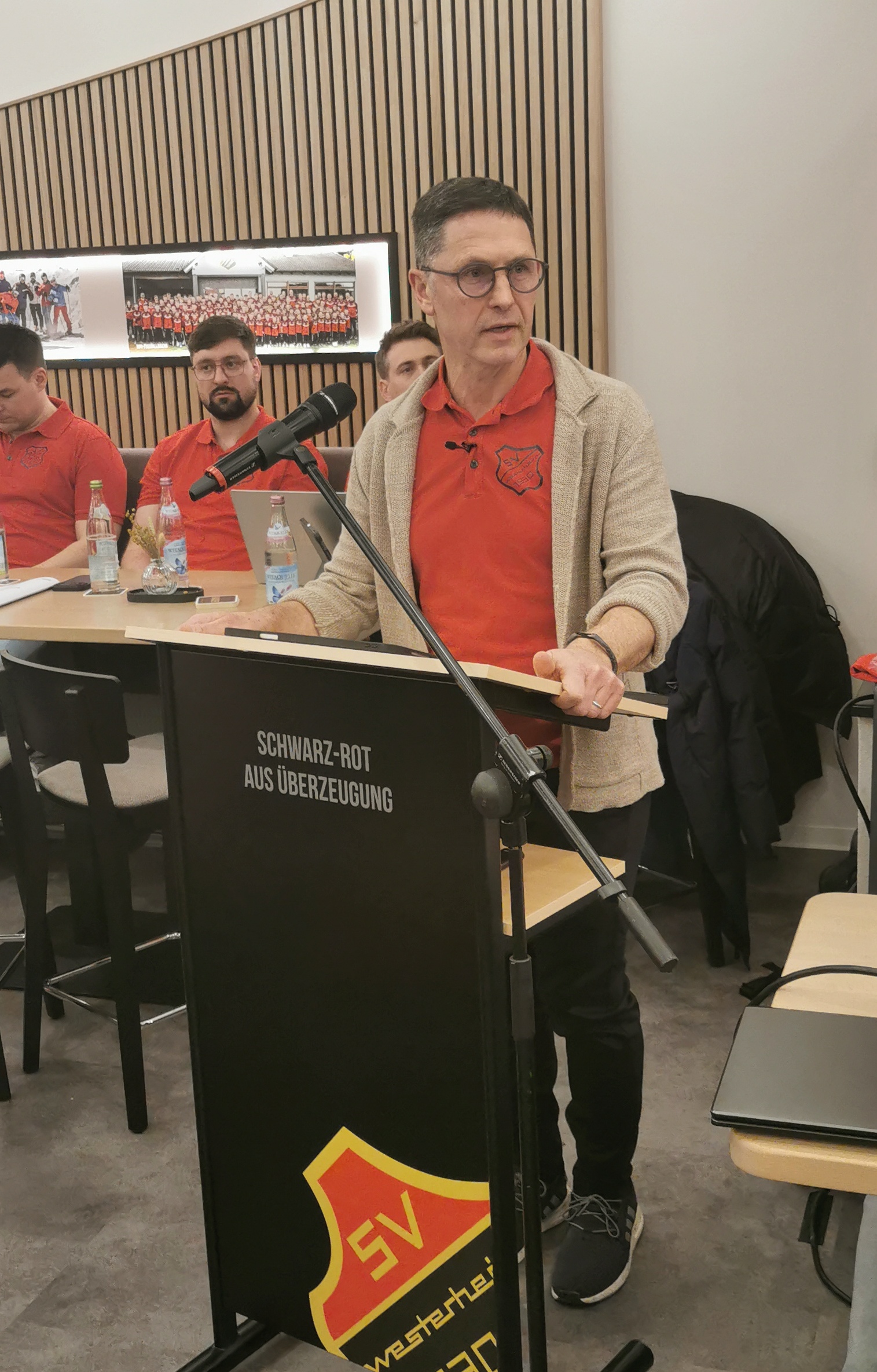 Am Freitag 27. März 2026 konnte Vorstand Jürgen Rieck 99 Vereinsmitglieder zur Mitgliederversammlung im frisch modernisierten Sportheim des SV Westerheim begrüßen. Nach dem Todengedenken durfte er 22 Mitglieder zu 25 Jahren und 12 Mitglieder zu 40 Jahren Vereinstreue mit Urkunde, Anstecknadel und kleinem Präsent ehren und gratulieren.