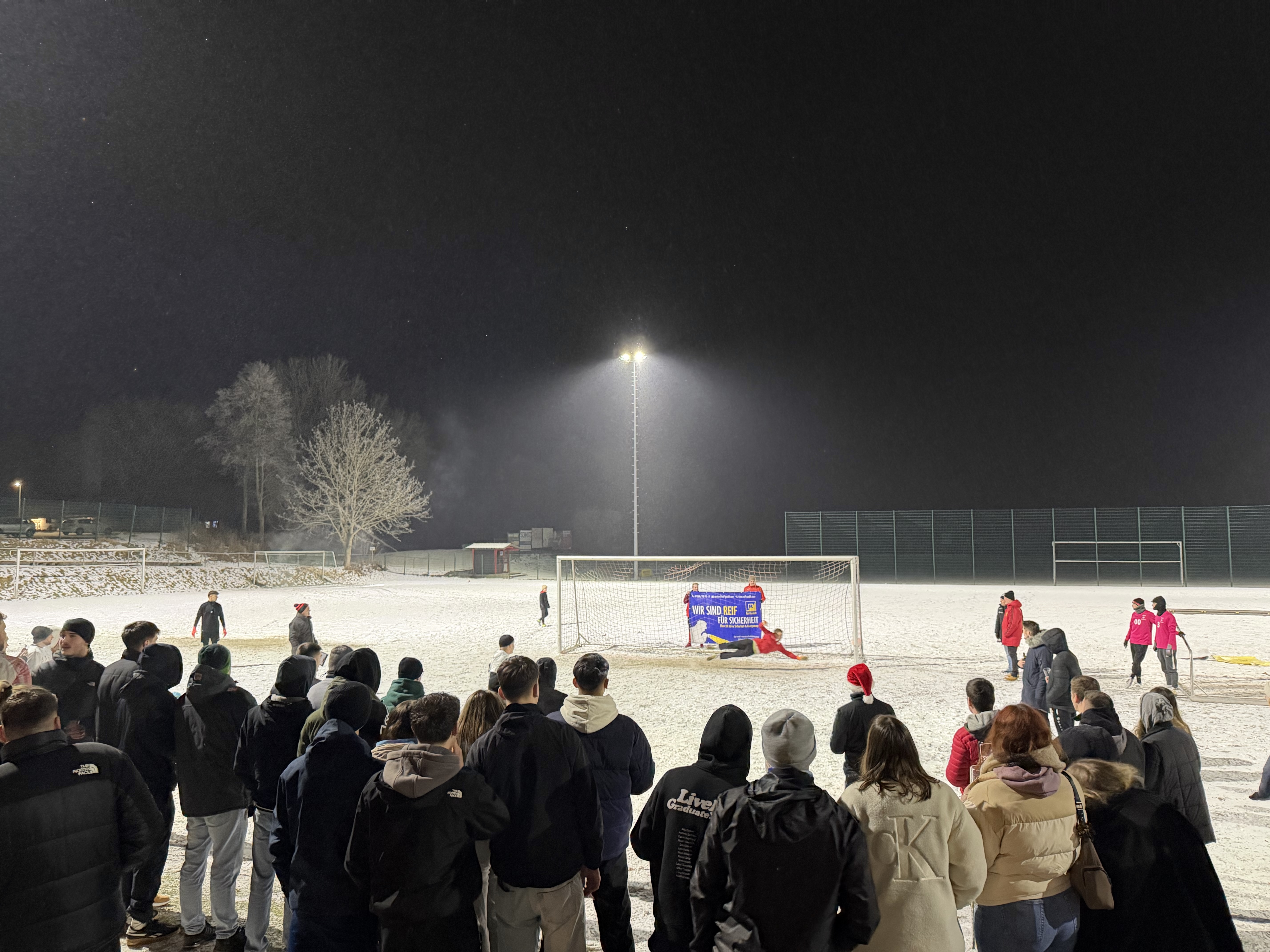 Vor dem Sportheim standen vier Tore bereit. Schnee und gefrorener Boden sorgten für perfekte Bedingungen, sehr zur Freude des Platzteams um Karl-Heinz Baumeister. Auch das Aufräumen geht bei solchen Bedingungen deutlich leichter von der Hand. Zudem konnten wieder vier Torsponsoren gewonnen werden, die für jedes erzielte Tor 5 Euro spendeten: