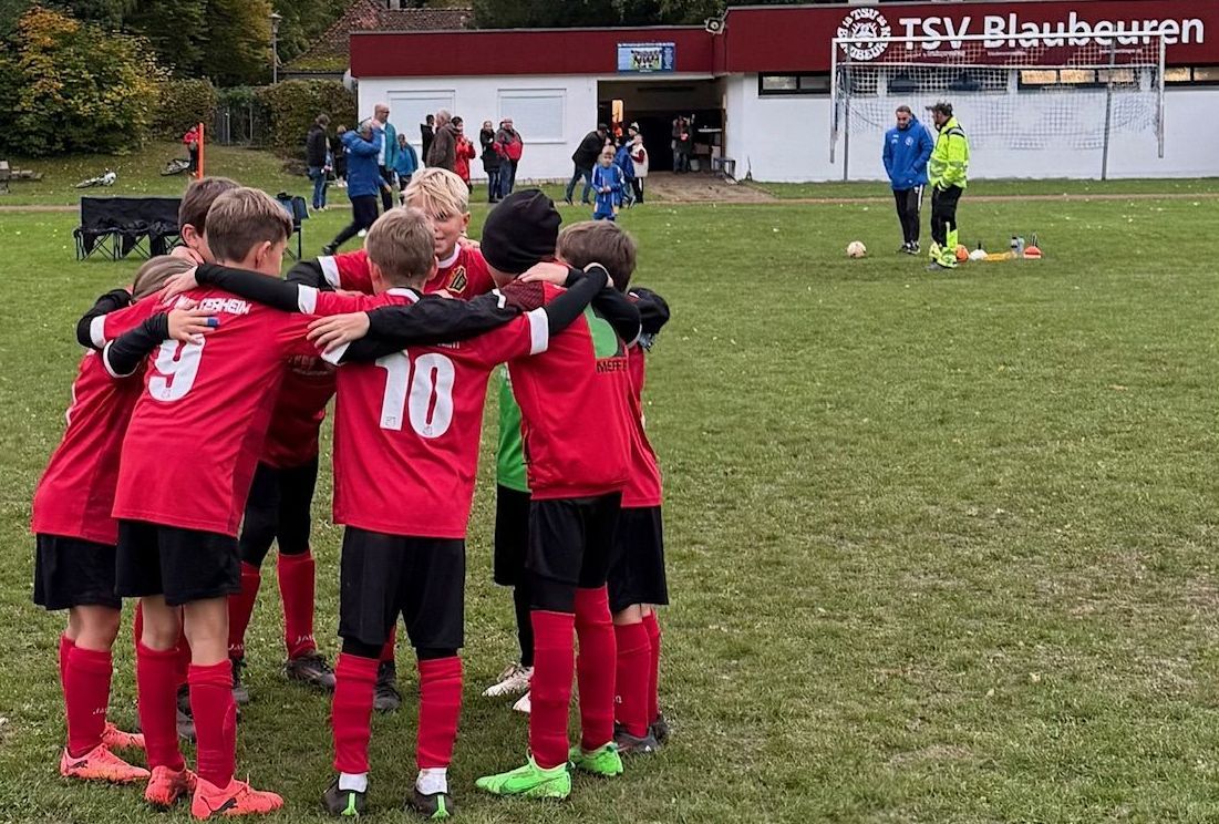 (Howie) Am Montag, den 6. Oktober, trat unsere E1-Jugendmannschaft vorverlegt in Blaubeuren an – Grund dafür waren die anstehenden Kinderbibeltage. Trotz einer verspäteten Anstoßzeit von zehn Minuten, bedingt durch Verzögerungen im vorherigen Spiel der E2, startete der SV Westerheim furios: Bereits in der zweiten Minute verwandelte Maxim Schönefeld einen sehenswerten Pass von Max Schwenkglenks zur frühen Führung. Die Gastgeber reagierten mit einem druckvollen Offensivspiel, dem unsere Defensive zunächst standhielt. Besonders Torhüter Marcel da Costa Häberle zeigte starke Paraden und bewahrte sein Team mehrfach vor dem Ausgleich. Erst kurz vor der Halbzeit gelang Blaubeuren der Doppelschlag – jeweils begünstigt durch individuelle Fehler auf unserer Seite. Kurz vor dem Pausenpfiff hatte der SVW noch eine gute Ausgleichschance, doch der gegnerische Keeper parierte stark.